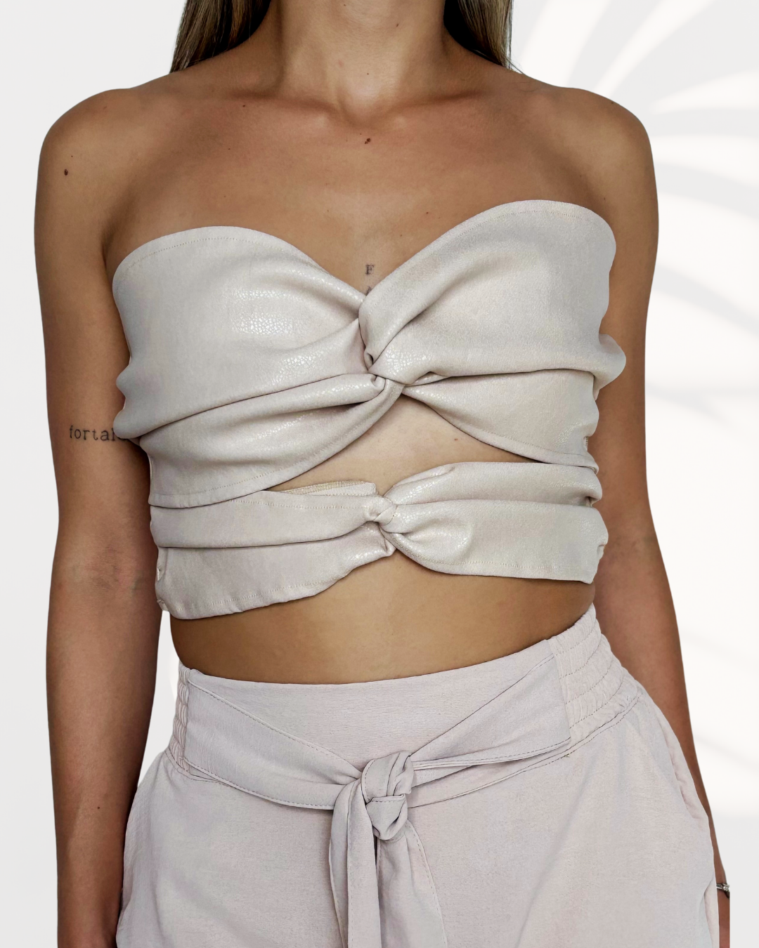 Con su diseño de doble nudo, el Echo Top agrega un toque elegante, especialmente cuando se combina con chaquetas.